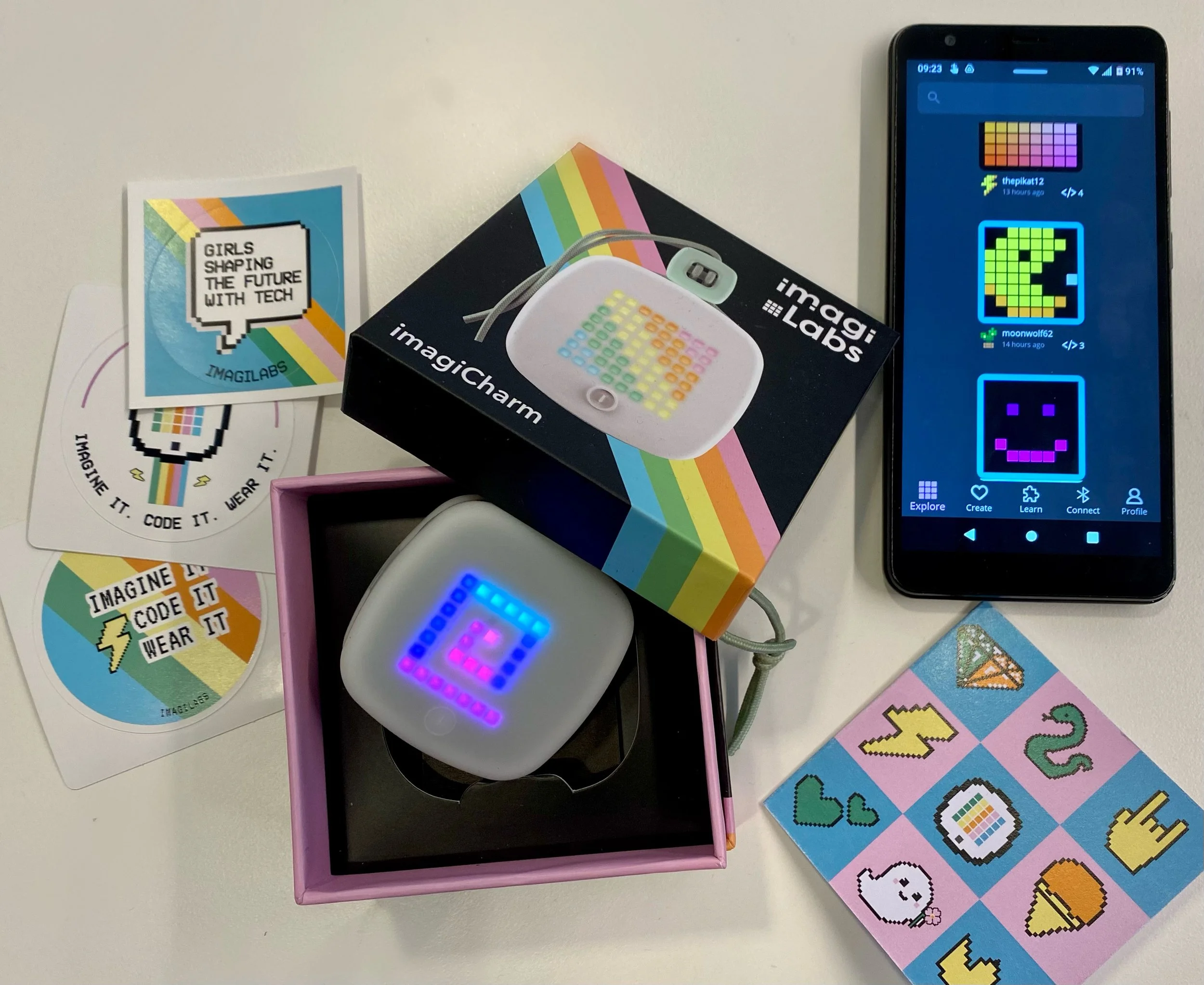 imagiCharm är hårdvaran som företaget imagiLabs har utvecklat. imagiLabs är en tech-startup, driven av kvinnor, med fokus på att öka mångfalden inom programmering och IT-utveckling. Deras stora mål är att få fler tjejer och ickebinära barn att upptäcka hur kul det är att koda. Ungdomarna lär sig då koda i appen imagi, som företaget utvecklat. Man kan sedan visa upp sina skapelser med sin imagiCharm.